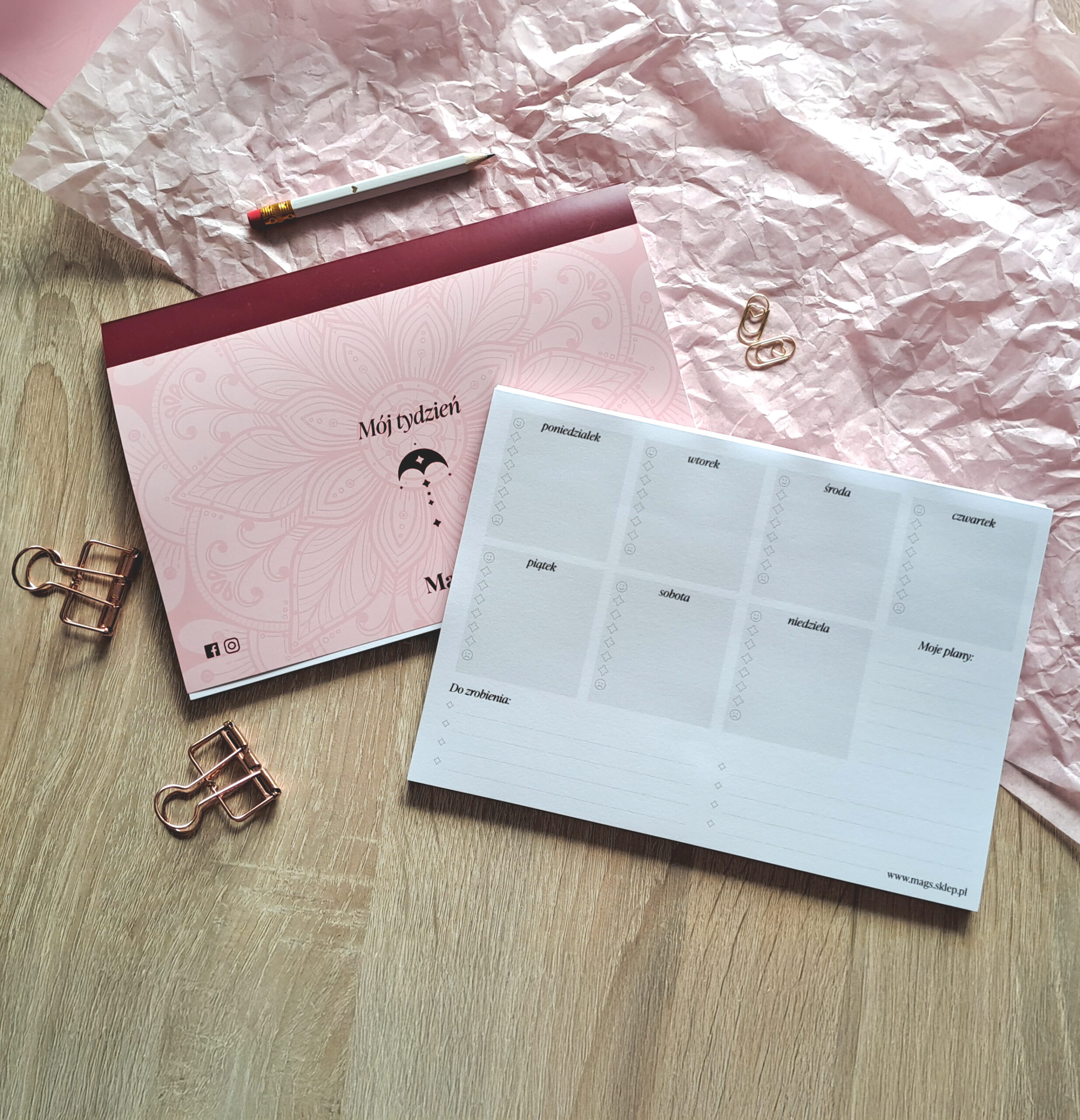 Planer tygodniowy w formacie A5, w bloczku. Zaplanuj swój tydzień w wygodny sposób.